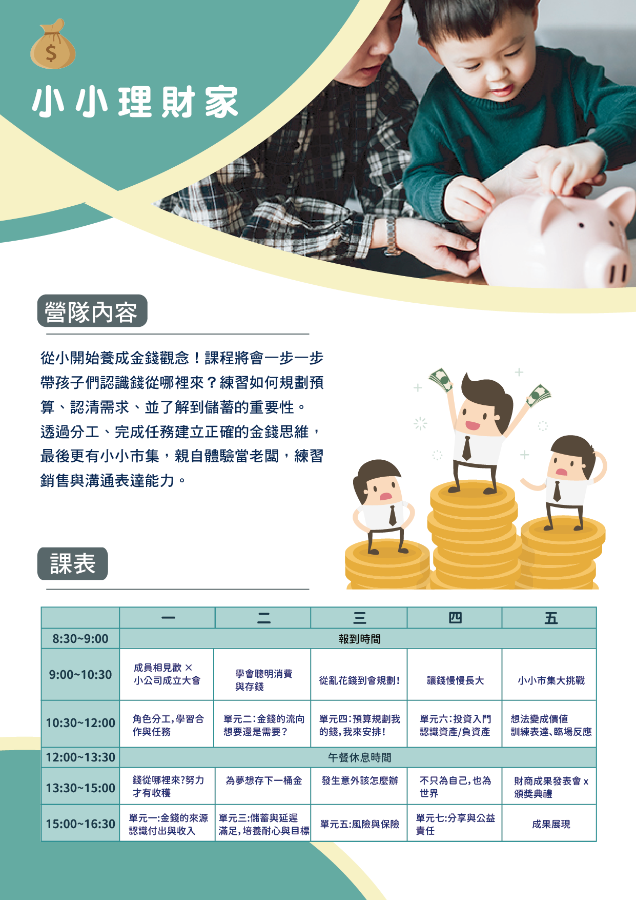 小小理財家-台北教室【7/6-7/10】、【8/3-8/7】